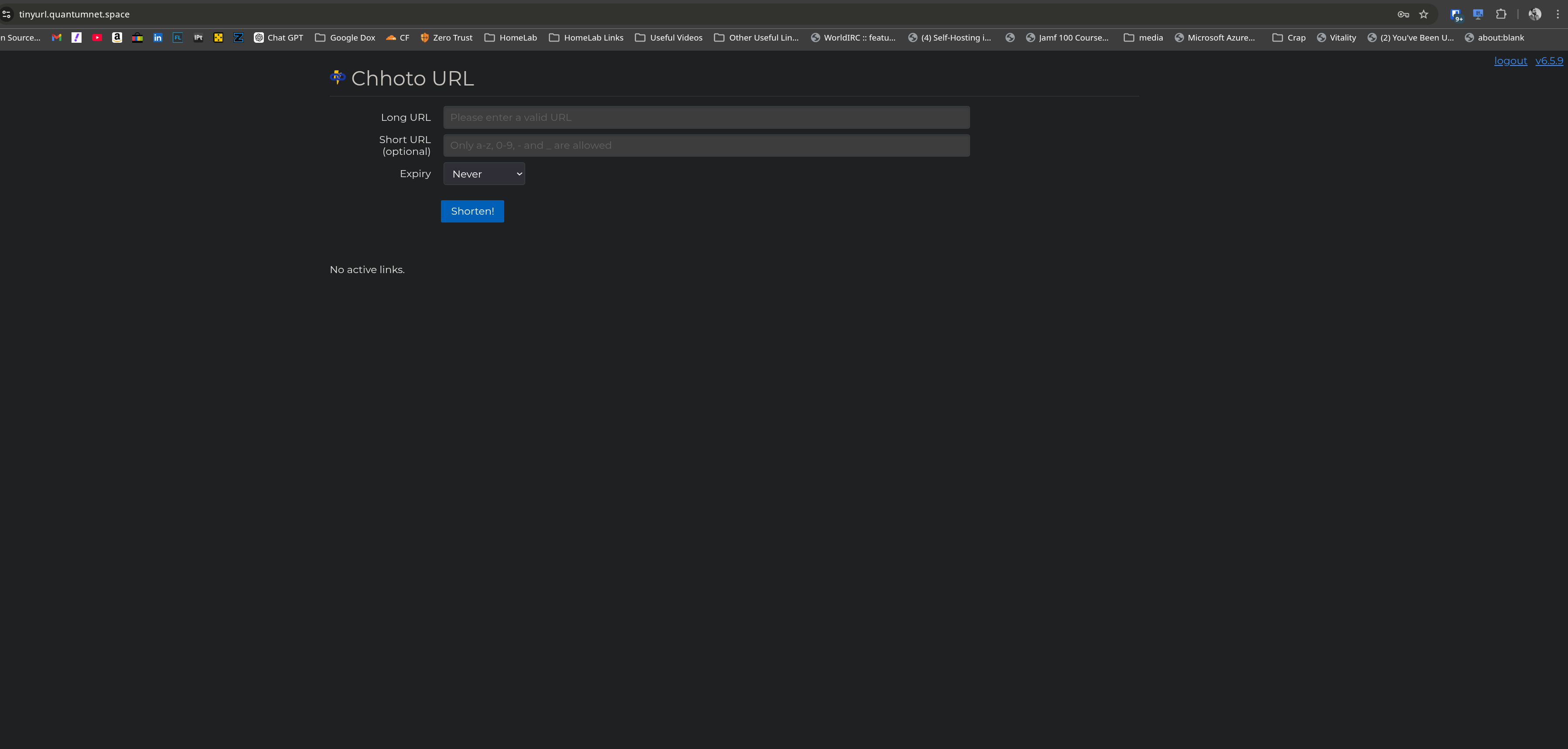 I deployed it in Docker, put it behind my usual setup, and pointed tinyurl.quantumnet.space at it. That was pretty much it. No drama, no heavyweight dependencies, no wrestling with a massive stack just to shorten a link. Chhoto URL ships with Docker support and a provided compose file, which makes it a very straightforward fit for a homelab deployment.