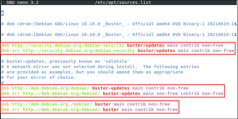 deb http://security.debian.org/debian-security buster/updates main contrib non-free
