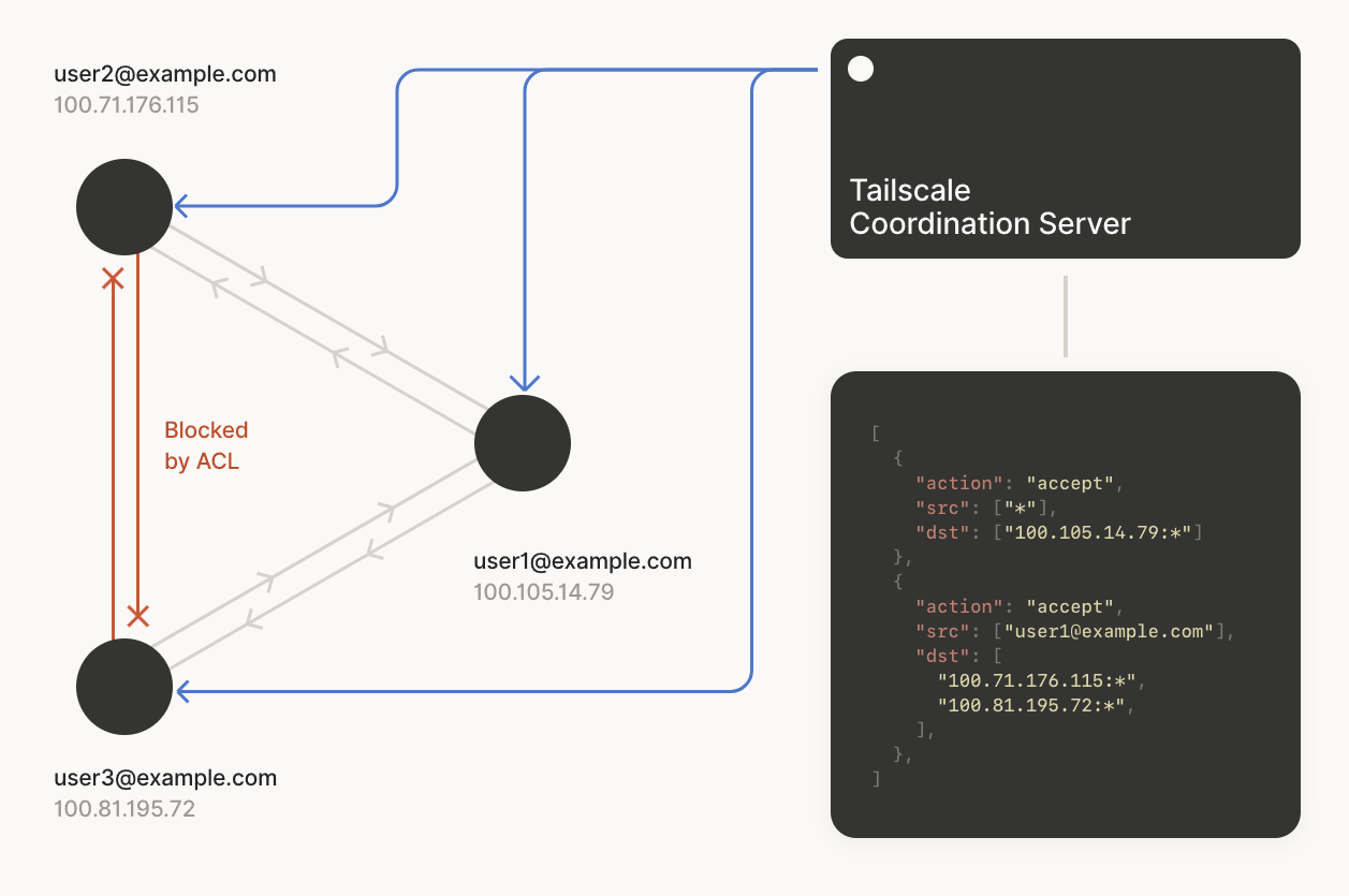 Use Tailscale's admin console (https://login.tailscale.com/admin) to manage access control. Here you can: