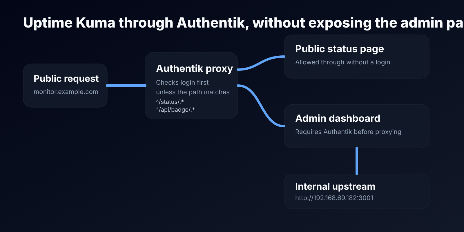 For Kuma, I allowed only the status-related paths through without login and kept the rest of the app behind Authentik: